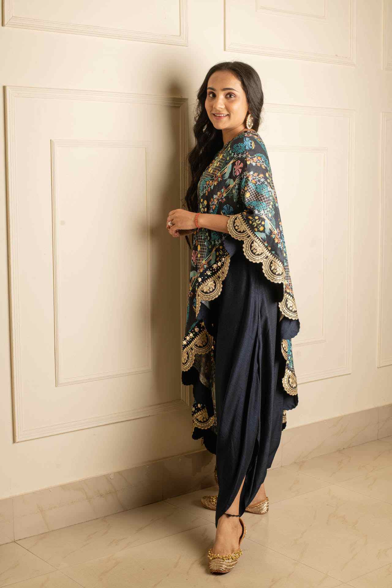 Deep Blue Rhapsody Cape Style Jumpsuit