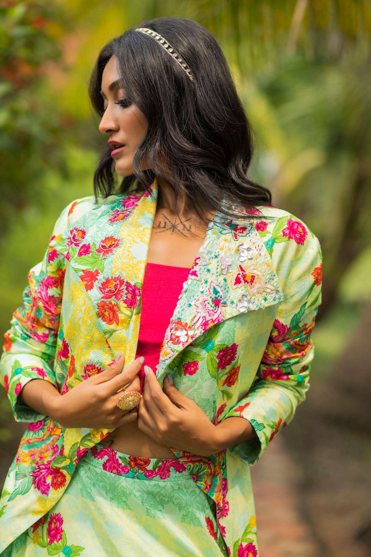 Lehenga With Asymmetrical Jacket & Crop Top